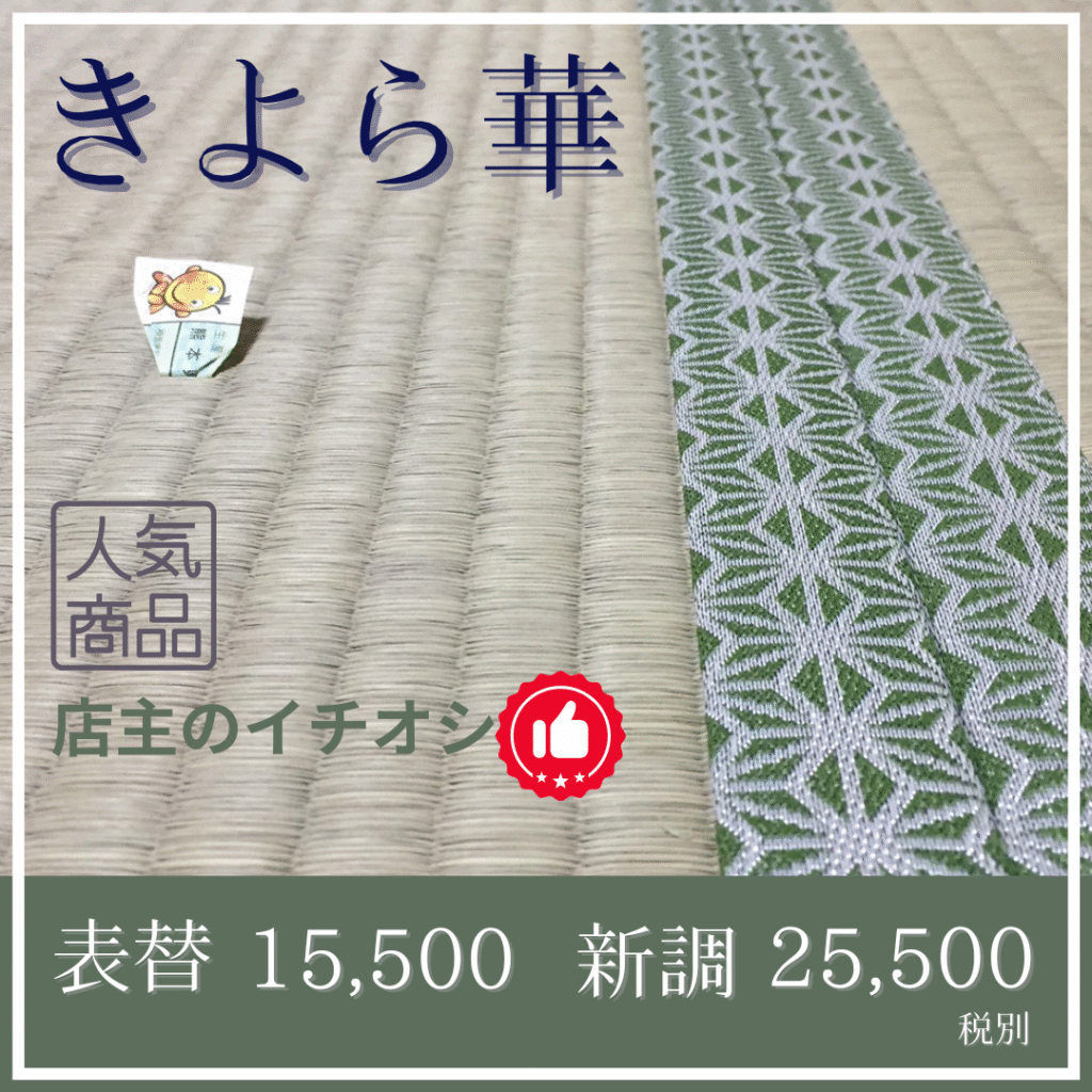 裏返しに種類はなく、特別な縁にしない限りは、全て同じ料金です。裏返しは、畳表の品質が、大変影響します。現在の畳表のコンディションによっては施工できない場合もあります。新畳、表替えのときにできるだけいいものを選んでおくと裏返しにしても大変美しいです。